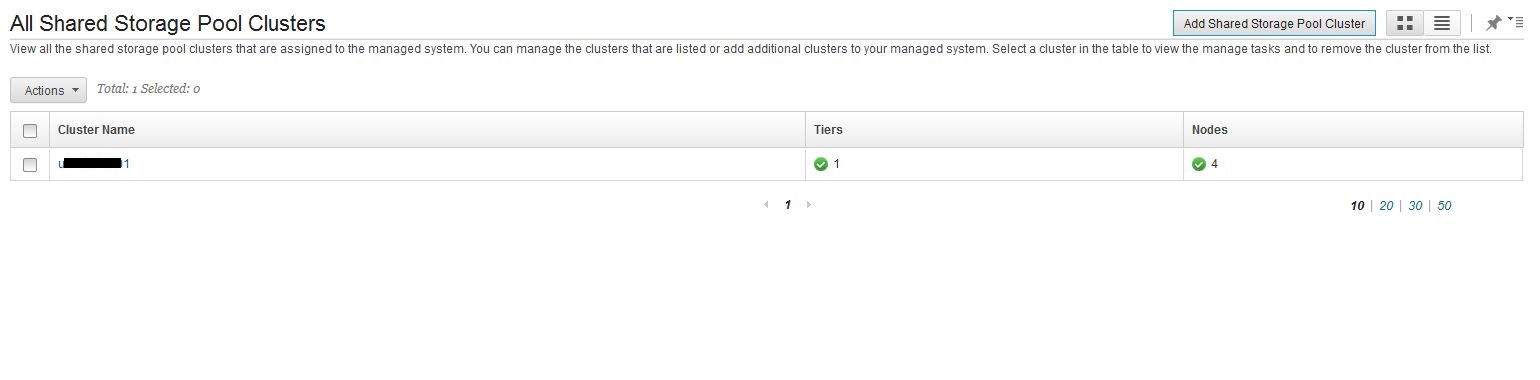 When the SSP build is complete you are returned to the All Shared Storage Pool Clusters window which shows a summary of the SSPs identified by your HMC.